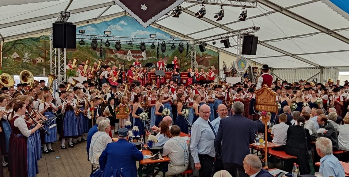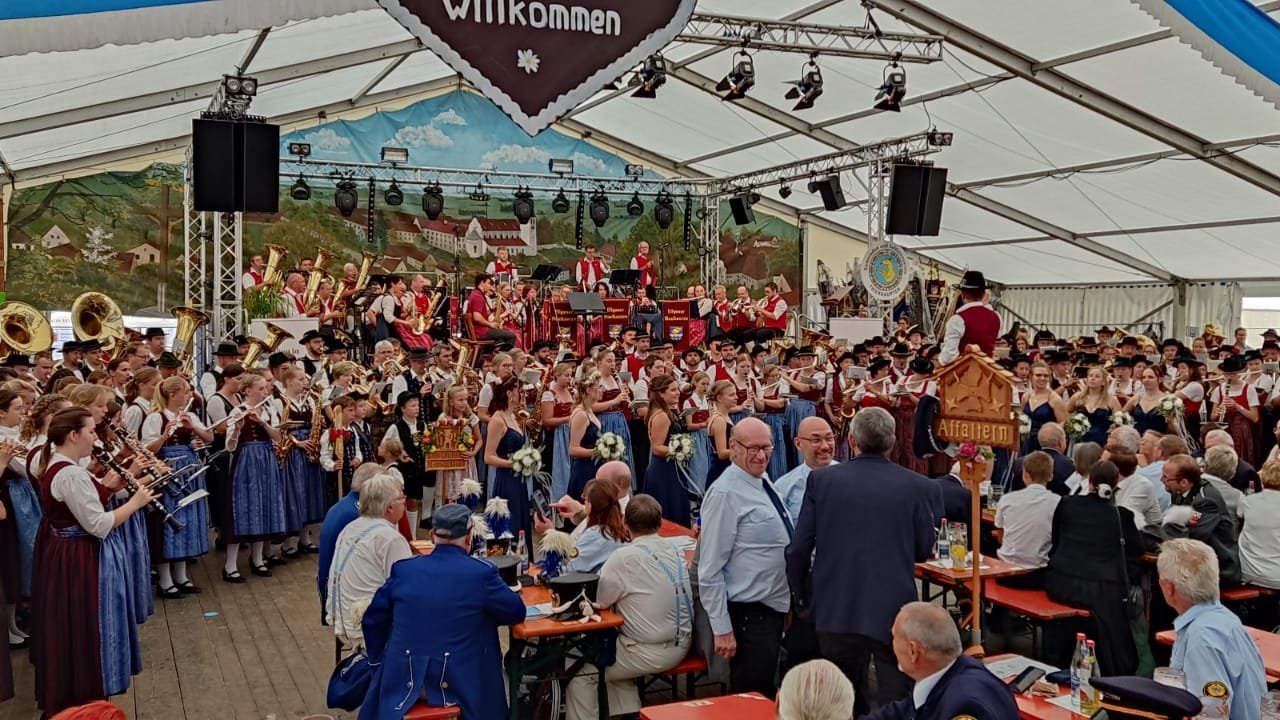 Aufgrund starker Regenschauer musste der geplante große Festumzug leider abgesagt werden. Stattdessen gaben die anwesenden Blasmusikorchester spontan ein gemeinsames Konzert im Festzelt und sorgten damit für einen unvergesslichen Festabschluss.
