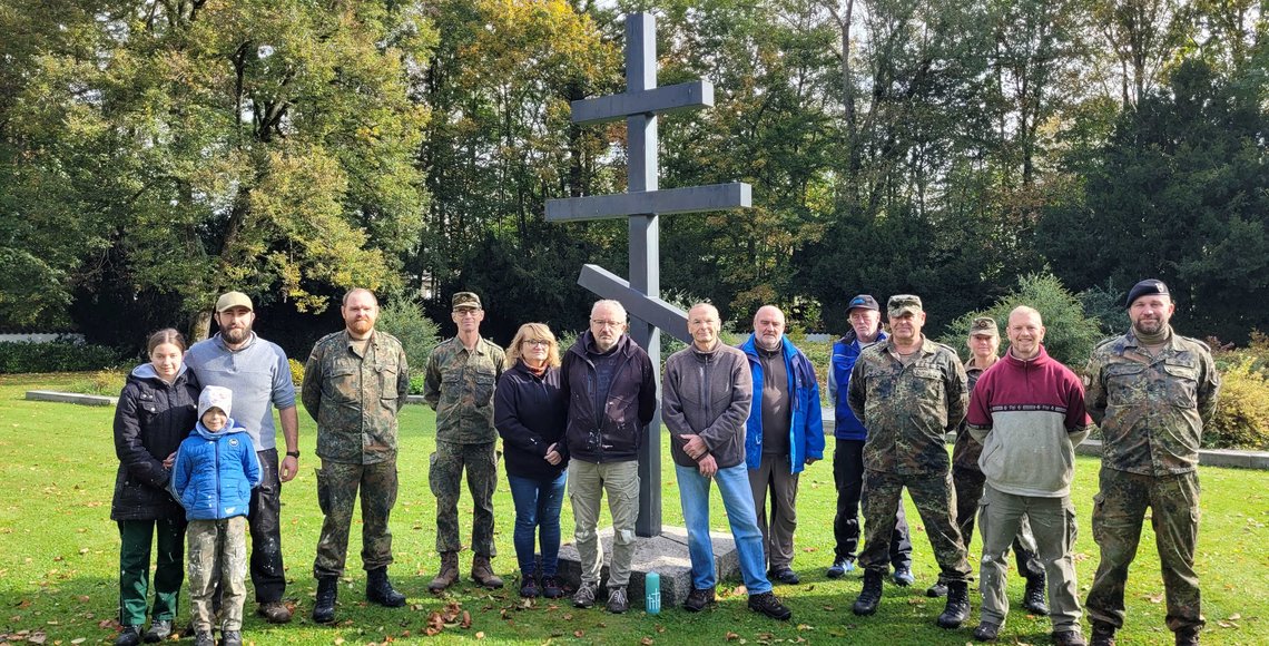 13 Freiwillige der Kreisgruppe Schwaben-Mitte des Reservistenverbandes führten am Samstag, 12. Oktober, einen Arbeitseinsatz auf der Kriegsgräberstätte Schwabstadl durch.
