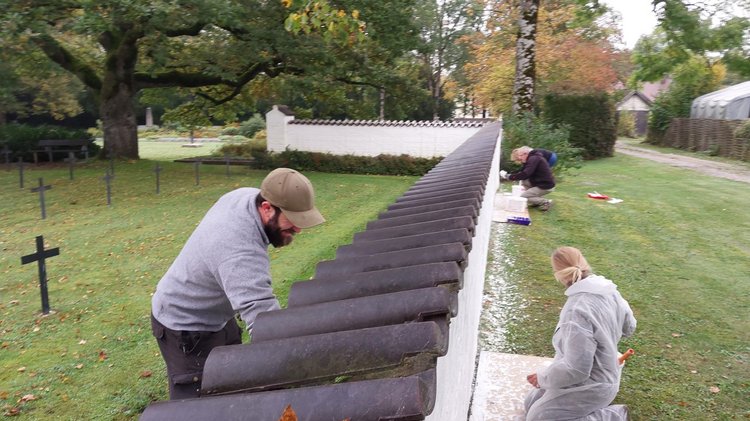 Die Projekttruppe unter Leitung von Stabsunteroffizier d.R. Thomas Cordes erneuerte den Anstrich der gesamten Friedhofsmauer. Die Maßnahme wurde mit dem örtlichen Friedhofsverwalter, Herrn Gröber, koordiniert.