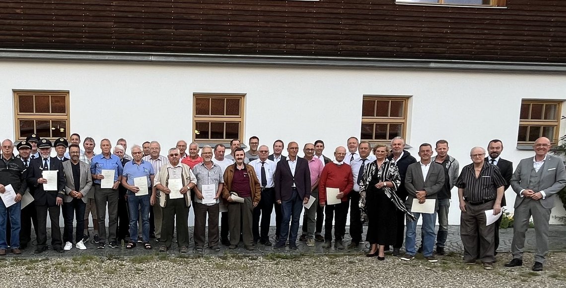 Landrat Metzger wies darauf hin, dass der Landkreis Aichach-Friedberg stolz auf das hohe ehrenamtliche Engagement seiner Bürgerinnen und Bürger sein darf, was sich nicht zuletzt auch in den vielen Kameradschaftsvereinen und dem starken BKV-Kreisverband widerspiegelt, die neben der tatkräftigen Unterstützung des Volksbundes auch einen wertvollen Beitrag für die Heimat- und Traditionspflege im Landkreis leisten. Die Verleihung der Verdienstspangen fand im Kreisgut Aichach statt. Im letzten Jahr wurden im Landkreis Aichach-Friedberg fast 20.000 € für die Kriegsgräberfürsorge und die Jugendarbeit des Volksbundes gesammelt.